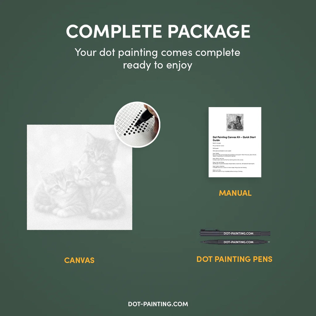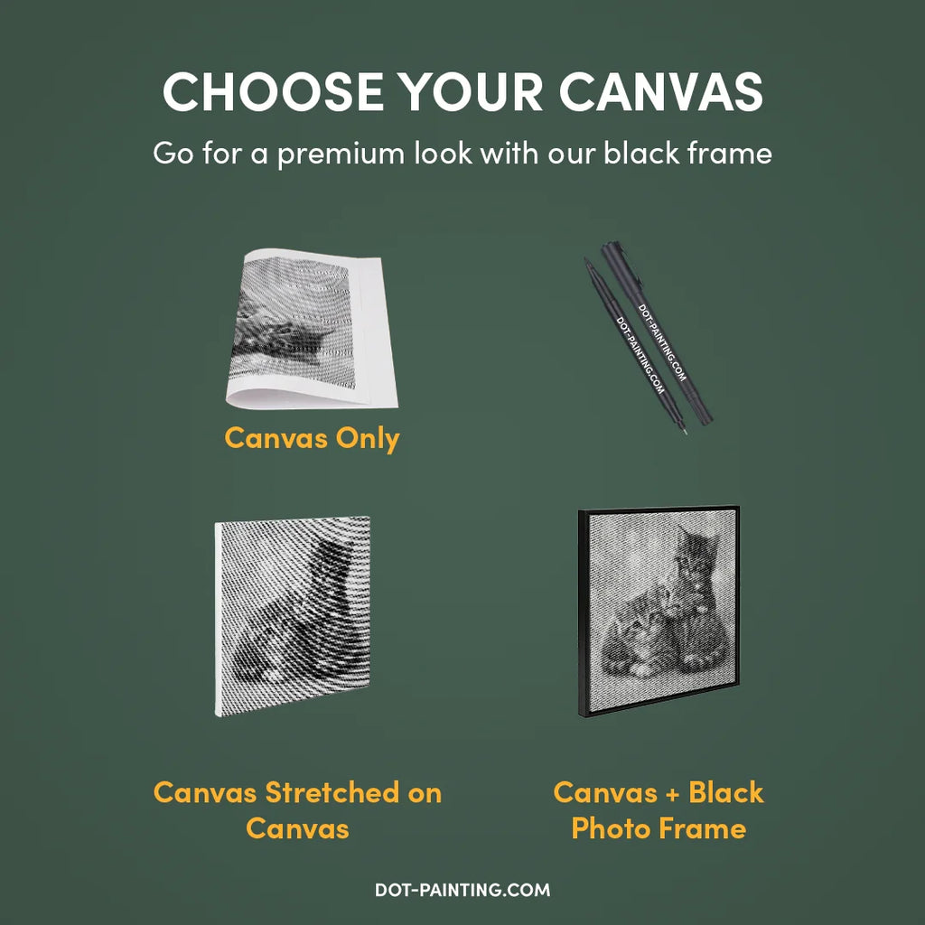 • 1x Lienzo premium (enrollado): Lienzo de alta calidad con el diseño que elegiste. Lo enviamos enrollado en un tubo rígido nunca doblado para que empieces con una superficie lisa y sin arrugas.