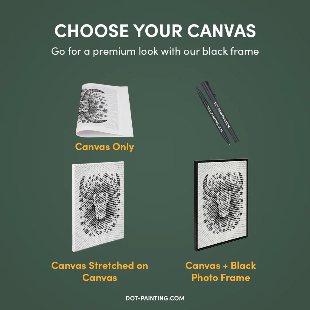 • 1x Lienzo premium (enrollado): Lienzo de alta calidad con el diseño que elegiste. Lo enviamos enrollado en un tubo rígido nunca doblado para que empieces con una superficie lisa y sin arrugas.