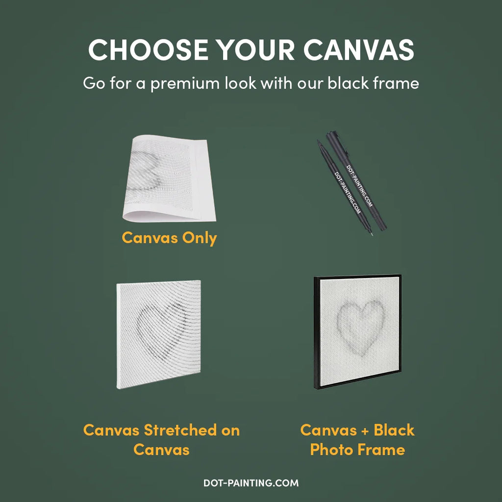 • 1x Lienzo premium (enrollado): Lienzo de alta calidad con el diseño que elegiste. Lo enviamos enrollado en un tubo rígido nunca doblado para que empieces con una superficie lisa y sin arrugas.