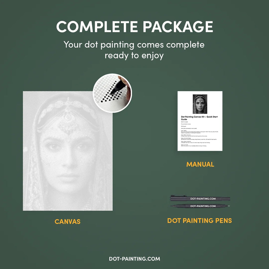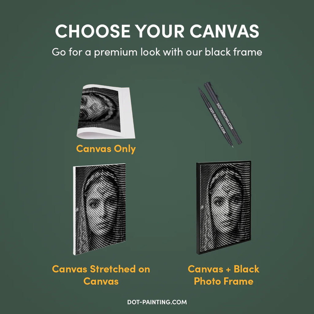 • 1x Lienzo premium (enrollado): Lienzo de alta calidad con el diseño que elegiste. Lo enviamos enrollado en un tubo rígido nunca doblado para que empieces con una superficie lisa y sin arrugas.