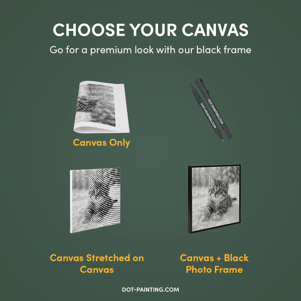 • 1x Lienzo premium (enrollado): Lienzo de alta calidad con el diseño que elegiste. Lo enviamos enrollado en un tubo rígido nunca doblado para que empieces con una superficie lisa y sin arrugas.