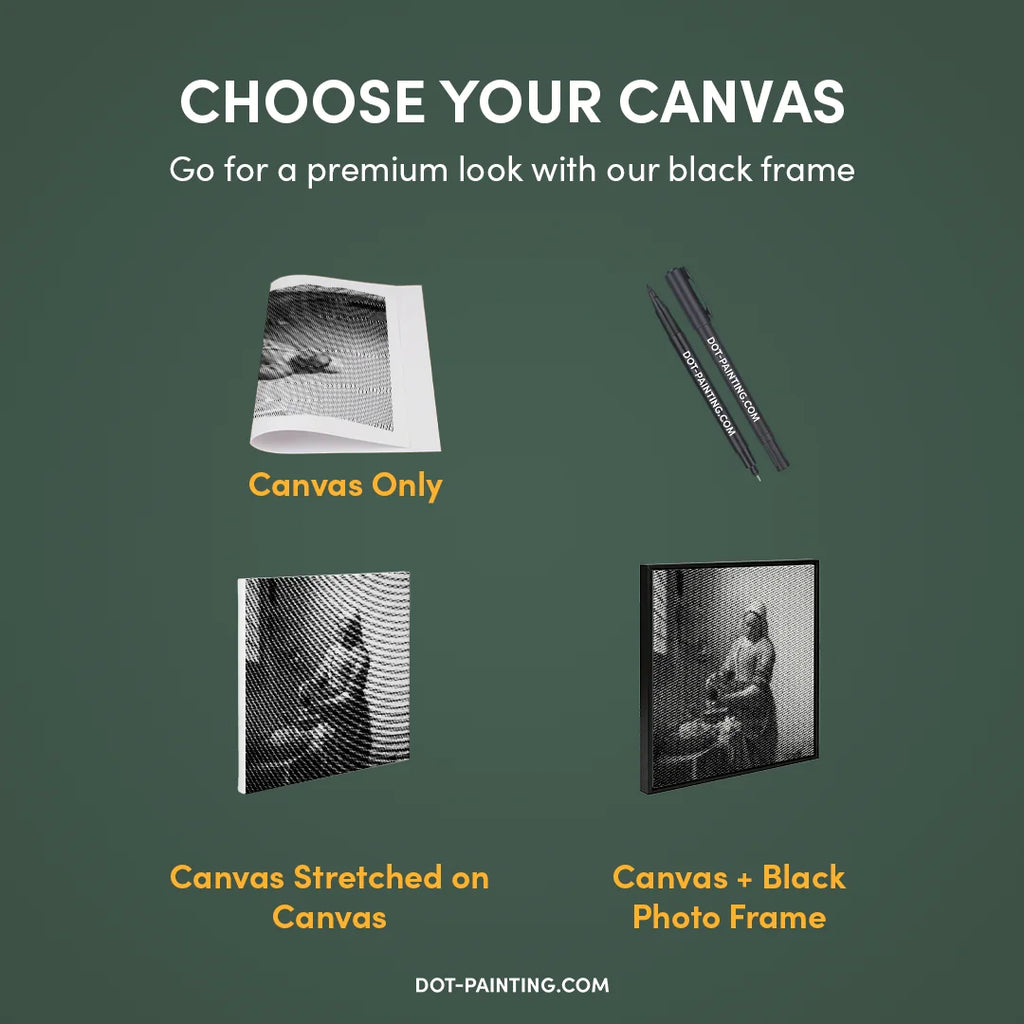 • 1x Lienzo premium (enrollado): Lienzo de alta calidad con el diseño que elegiste. Lo enviamos enrollado en un tubo rígido nunca doblado para que empieces con una superficie lisa y sin arrugas.