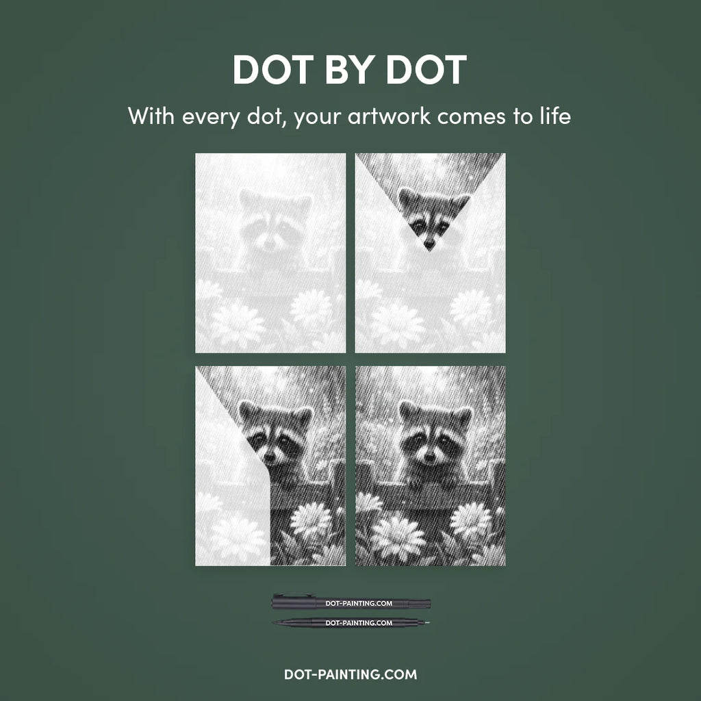 Ready to unplug and unleash your inner artist? Discover the joy of Dot Painting with our stunning Raccoon with Flowers Dot Painting kit.
