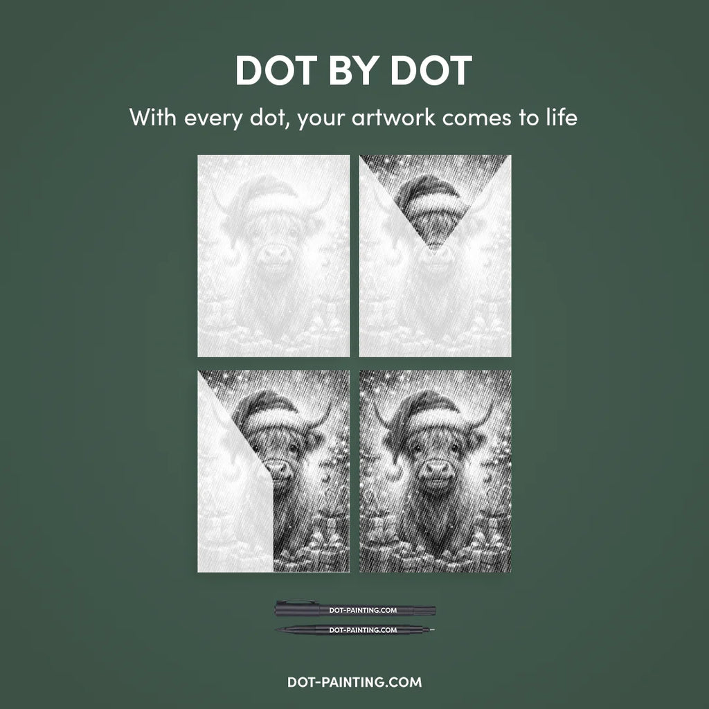 With Dot Painting, you use high-quality markers to bring the Scottish Highlands with Gifts Dot Painting kit to life, one dot at a time. It’s cleaner, easier, and incredibly satisfying.