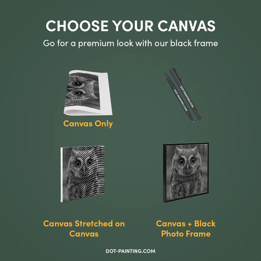 With Dot Painting, you use high-quality markers to bring the Small Owl with Big Eyes Dot Painting kit to life, one dot at a time. It’s cleaner, easier, and incredibly satisfying.