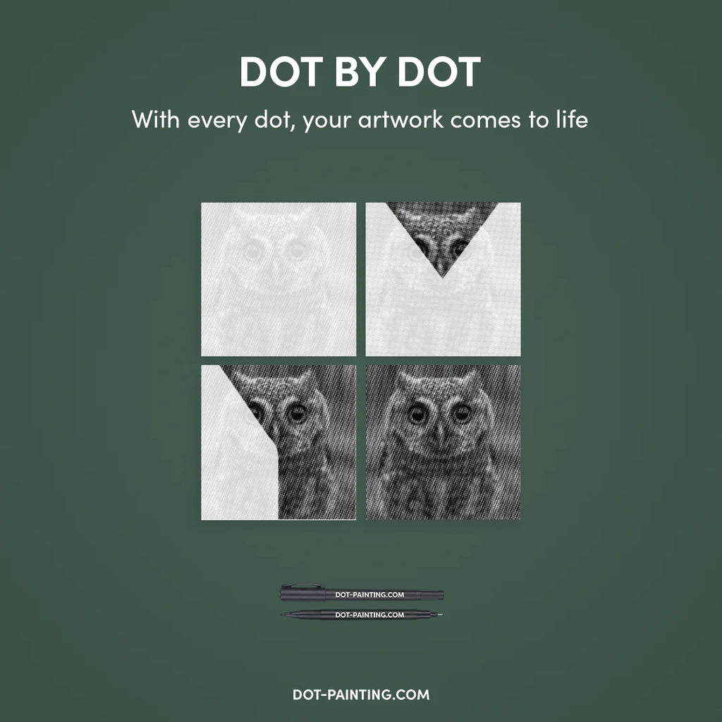 Ready to unplug and unleash your inner artist? Discover the joy of Dot Painting with our stunning Small Owl with Big Eyes Dot Painting kit.